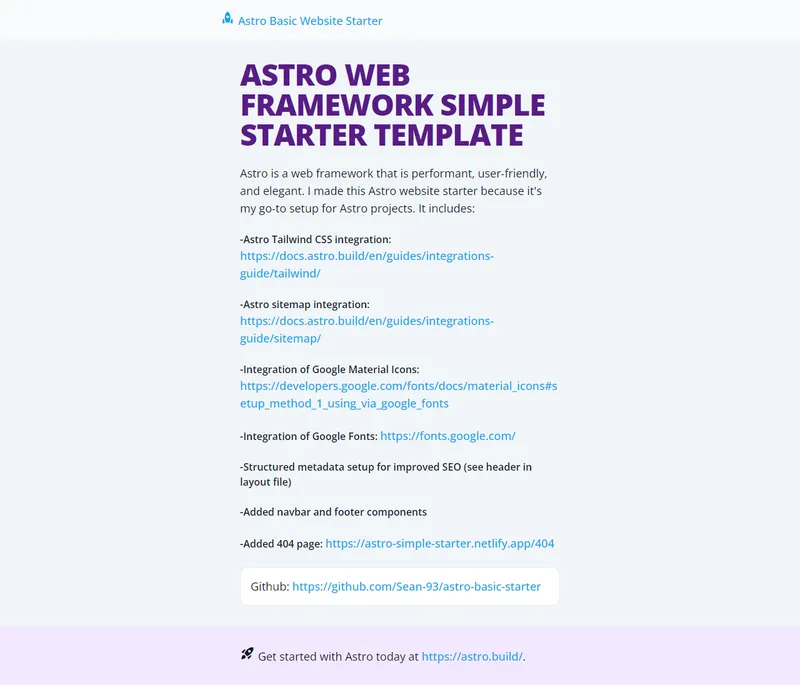 Astro Simple Boilerplate - Tailwind, Sitemap, Google Font/Icons, Metadata by Sean Rooney